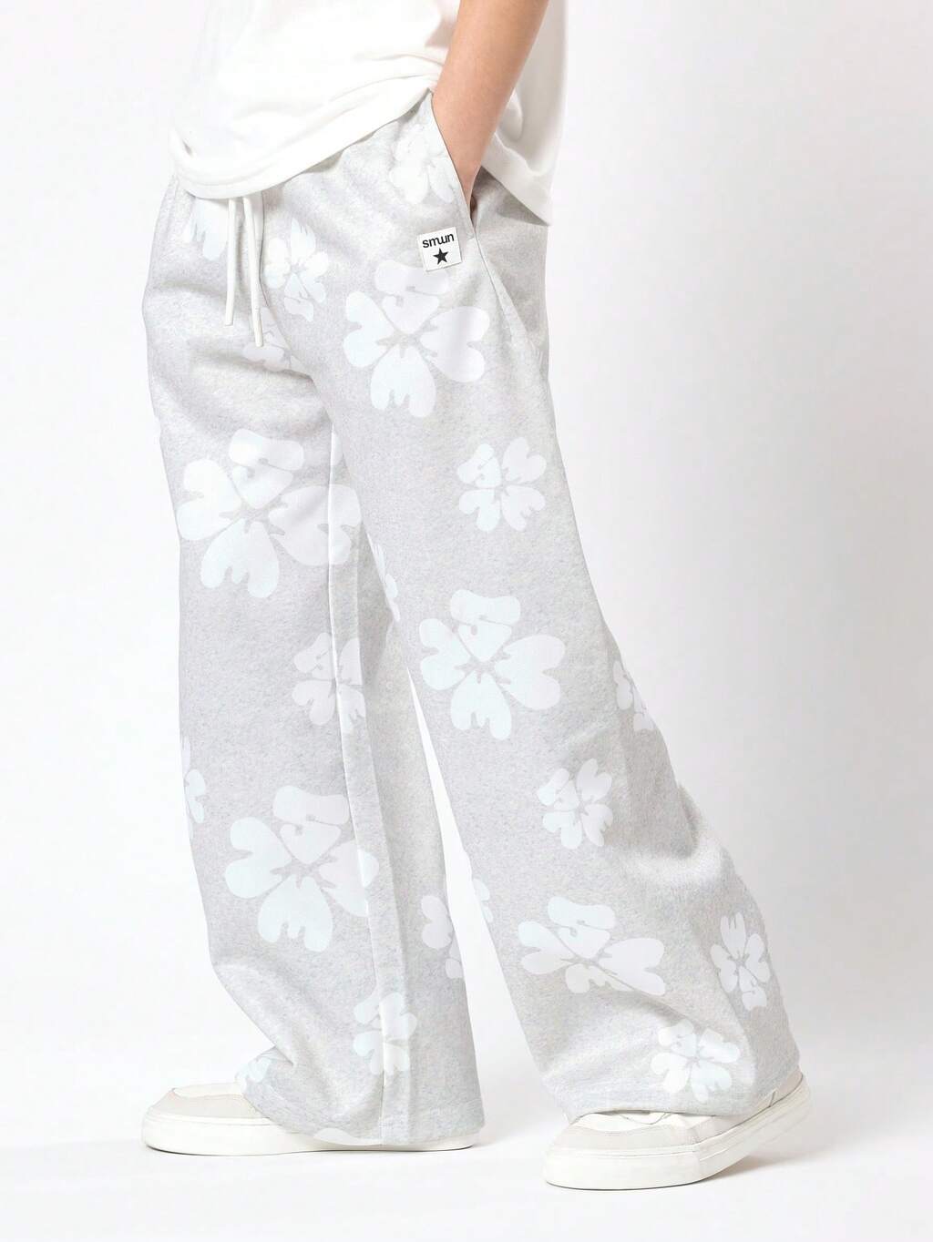 Pantaloni della tuta a gamba larga con stampa floreale, coulisse e tasche
