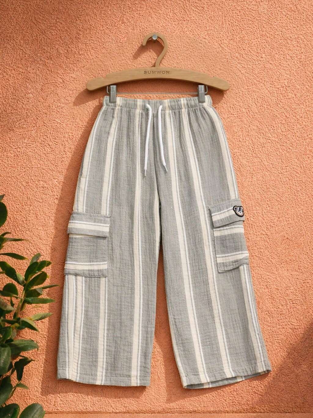 Pantaloni cargo rilassati in doppio tessuto con tasche laterali, pantaloni casual con vestibilità morbida per ragazzi pre-adolescenti, con vita con cordoncino comoda