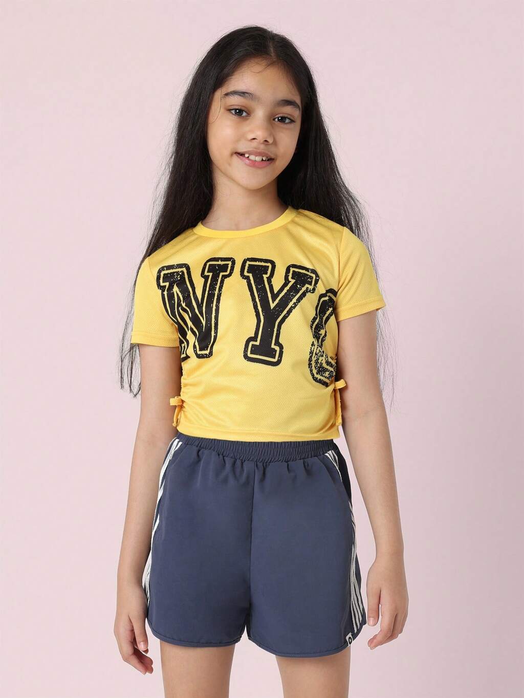 Confezione da 2 pezzi con maglietta corta crop e pantaloncini con stampa NYC per ragazze tween