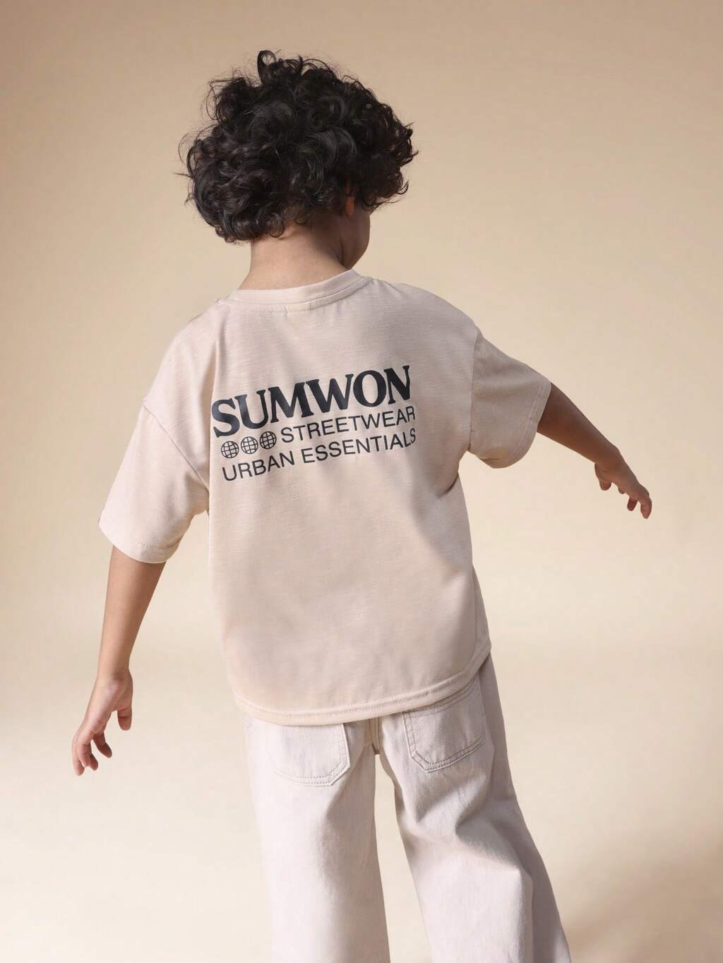 Maglietta a girocollo a maniche corte oversize a righe per ragazzi, casual, estiva, per uso quotidiano