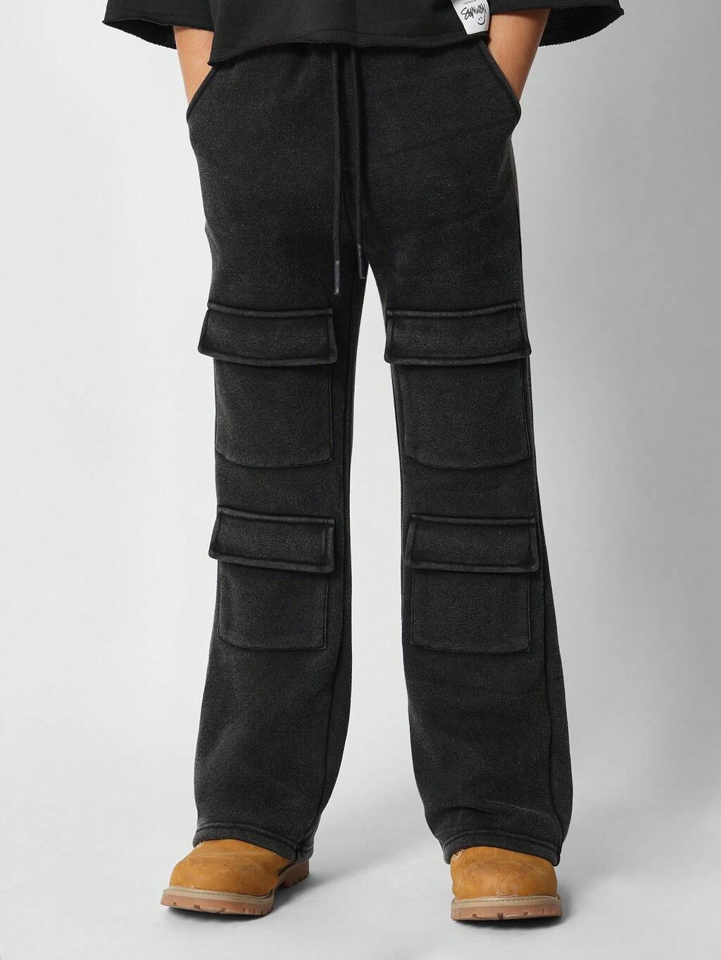 Pantaloni della tuta cargo svasati in pile con tasche applicate