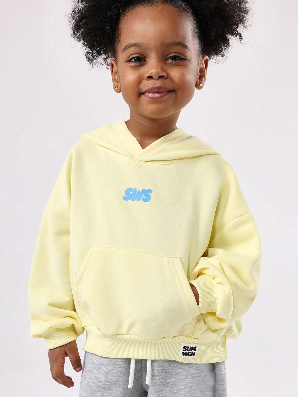 Felpa con cappuccio giallo pastello con stampa del logo
