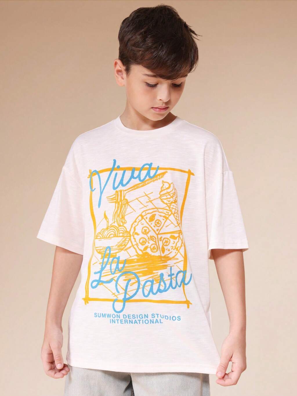 Maglietta oversize da ragazzo con grafica divertente a tema pasta, manica corta, girocollo, stampa novità a tema cibo, casual estiva