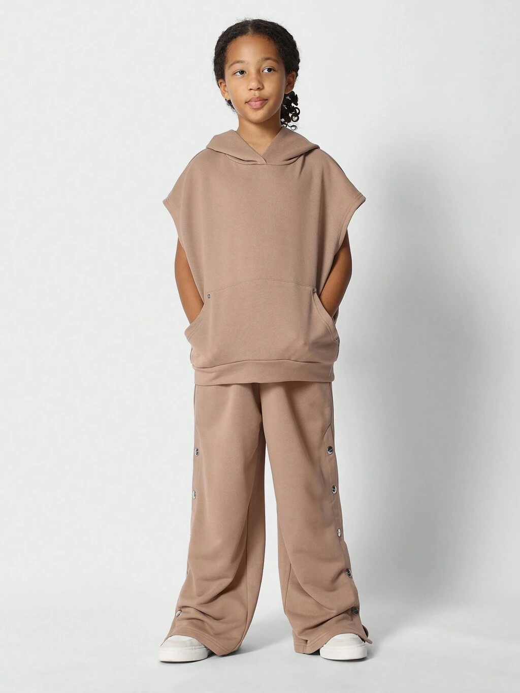 Set da 2 pezzi con canotta boxy con cappuccio e pantaloni a zampa di elefante per pre-adolescenti