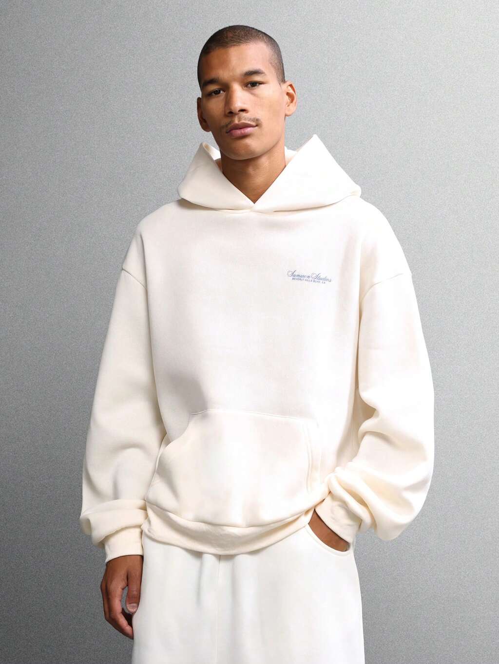 Felpa con cappuccio squadrata con stampa di testo sul petto