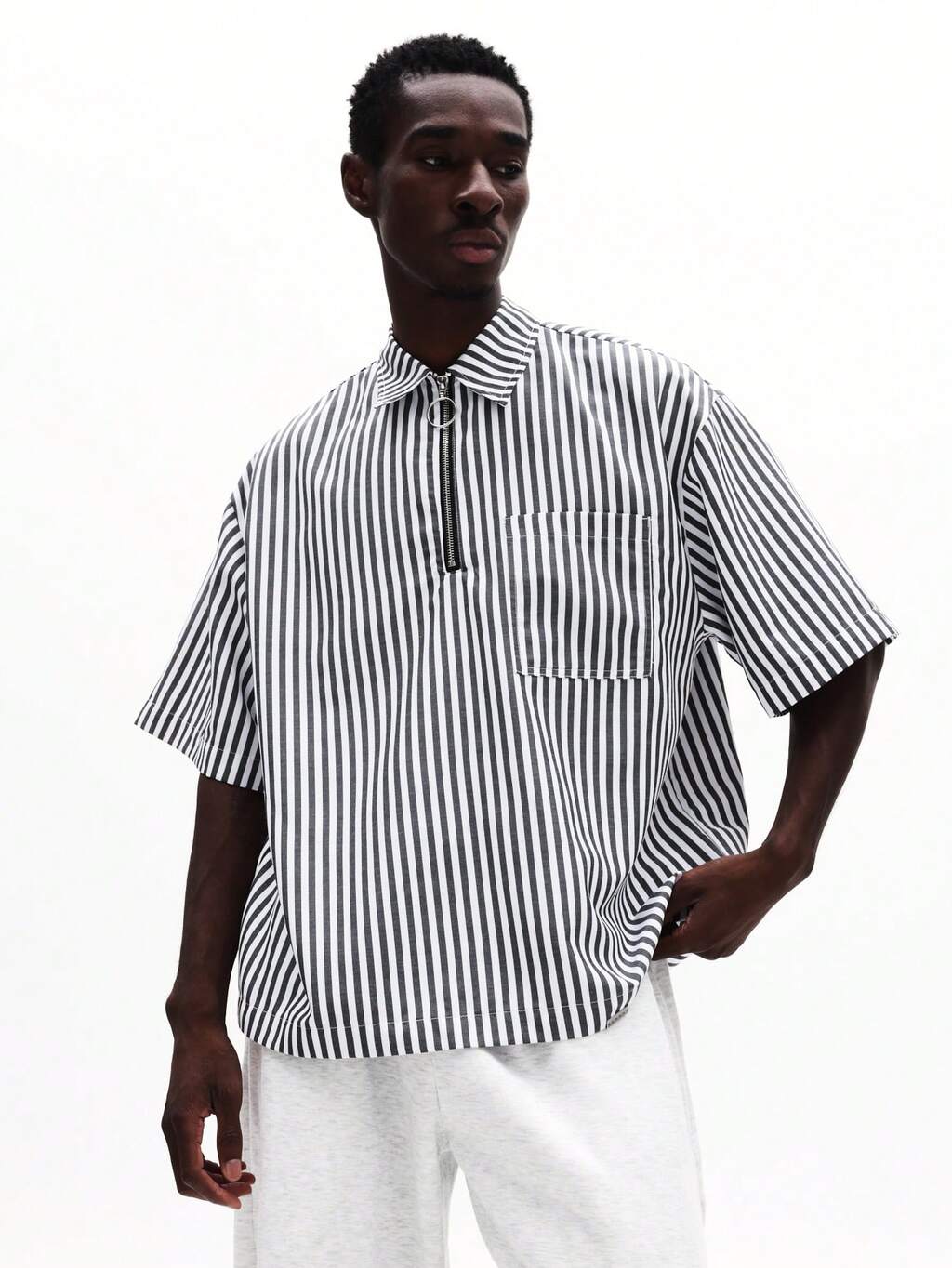 Camicia a righe con mezza zip e colletto alla francese