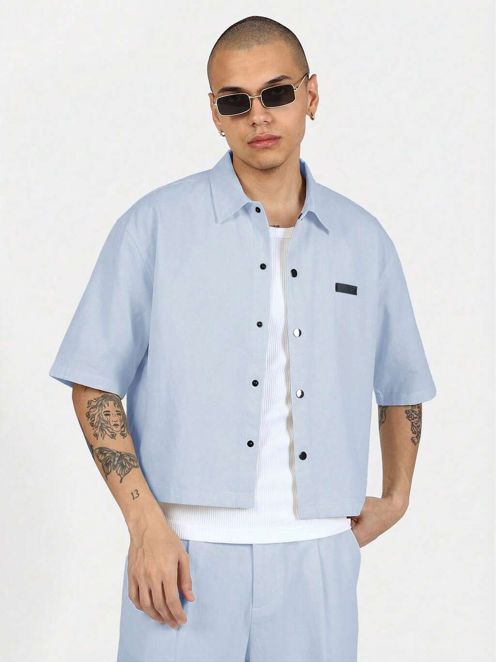 Camicia crop fit a maniche corte con bottoni e taschino sul petto