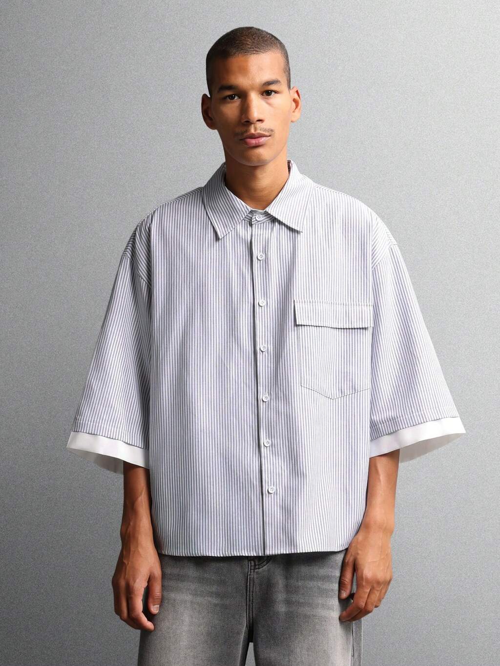 Camicia a righe con stampa grafica con numero, vestibilità boxy