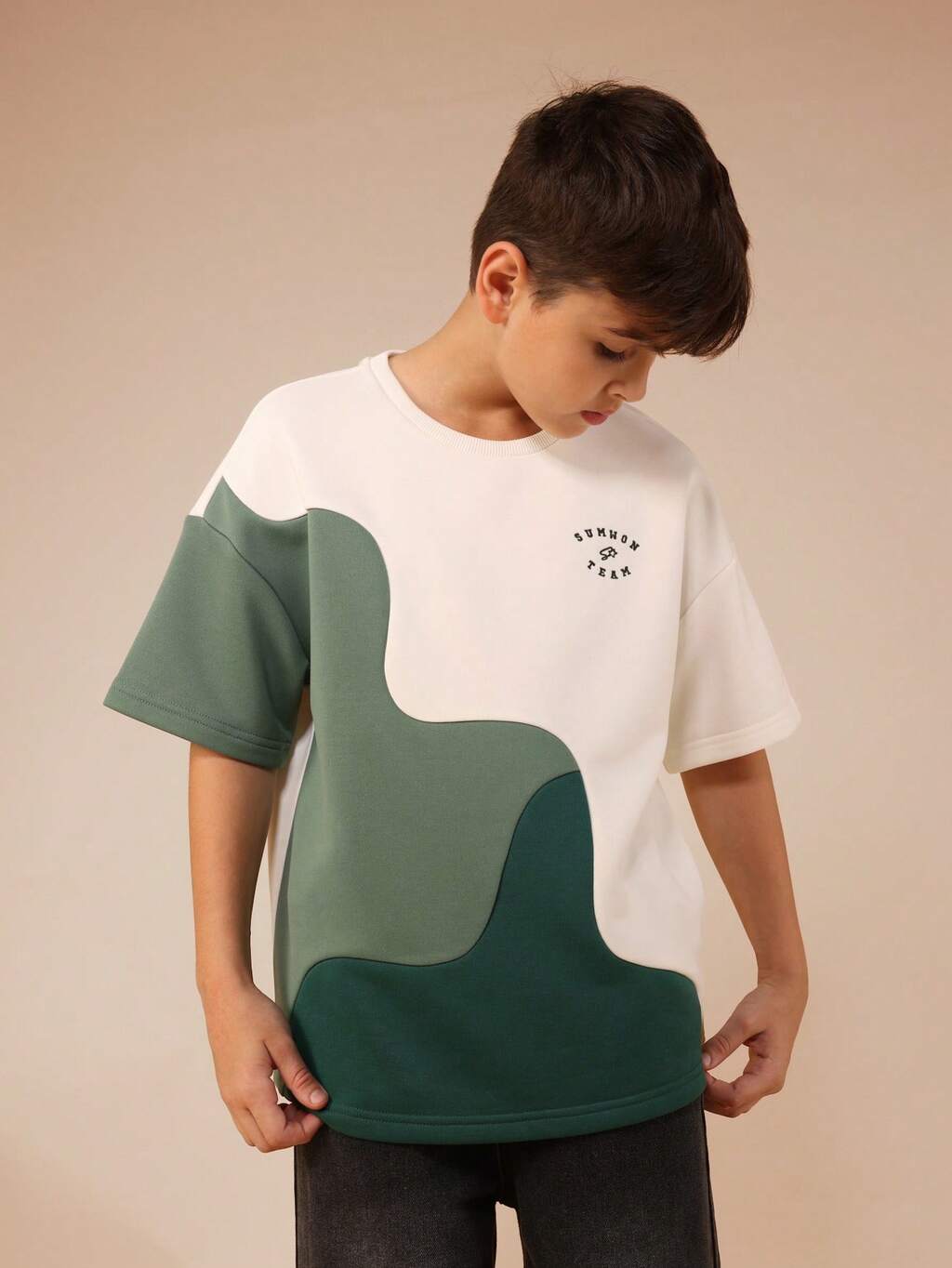 Maglietta casual a maniche corte per ragazzi pre-adolescenti con stampa grafica e design con testo giapponese