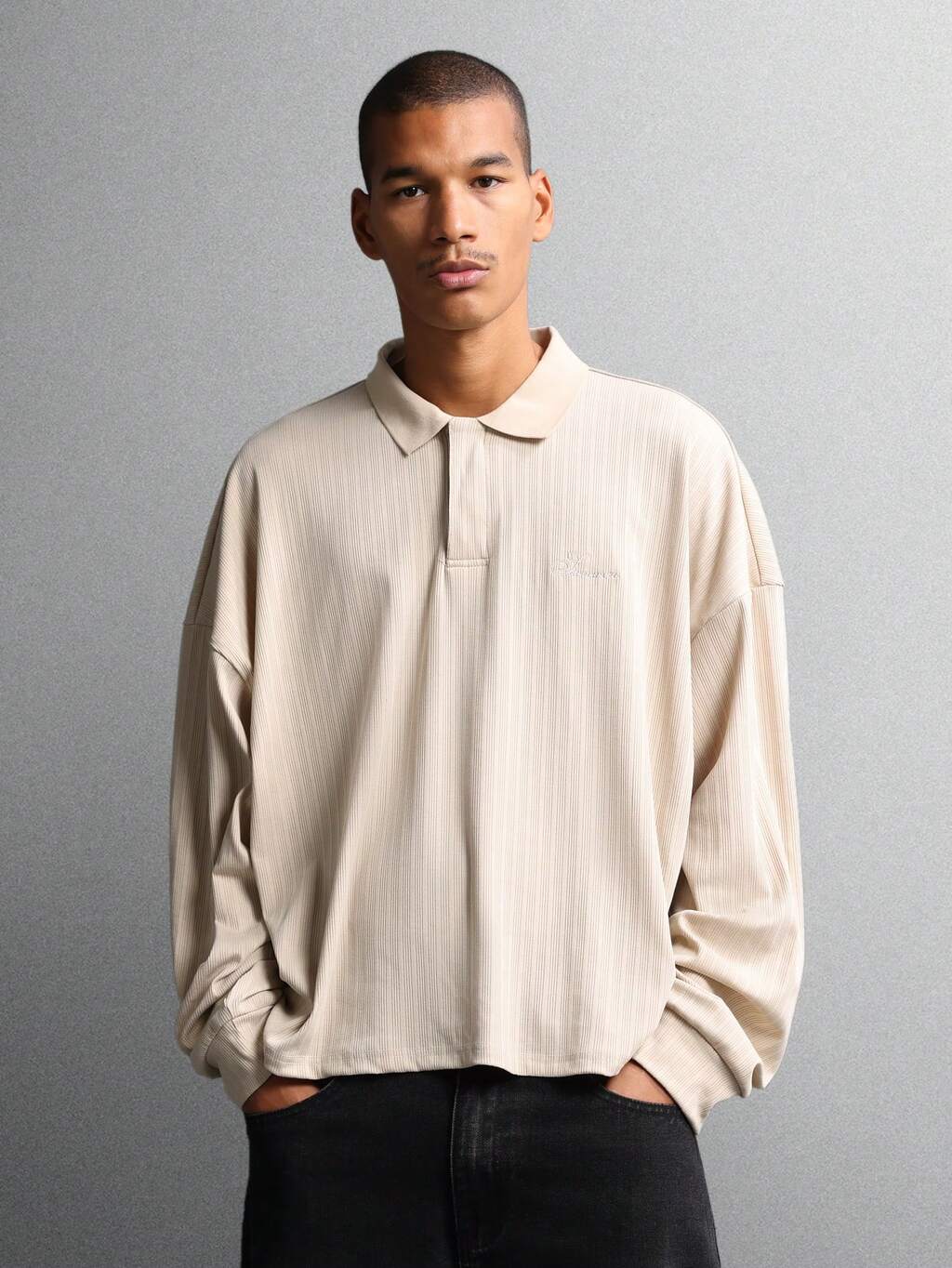 Polo a maniche lunghe con colletto e lavorazione a coste