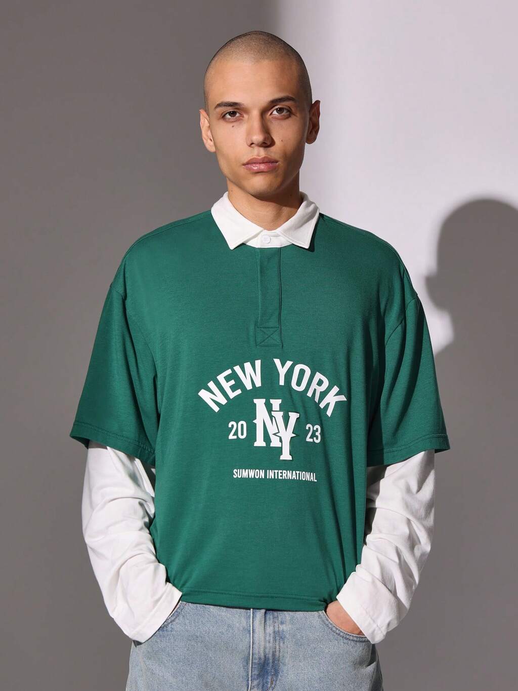 Polo in spugna con scritta "Summon Society Signature Script Mint", ideale per la Festa di San Patrizio, l'Irish Holiday, casual oversize