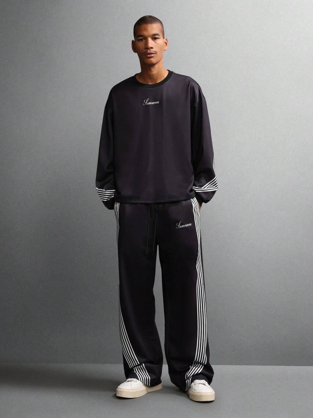 Felpa oversize con dettagli a righe e pantaloni a gamba larga