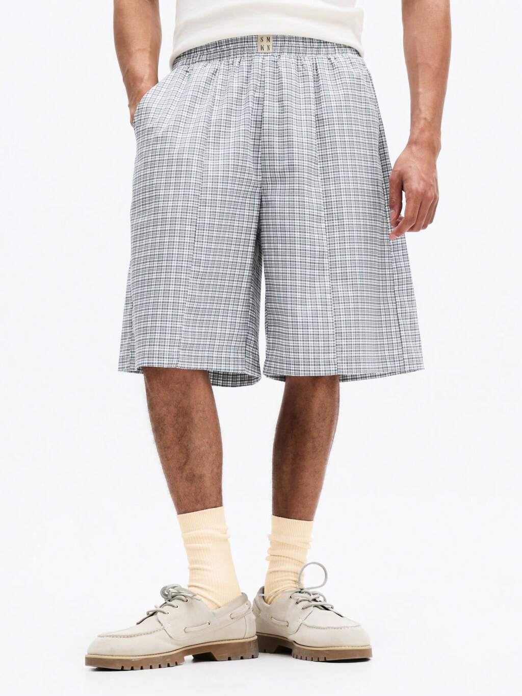 Short in denim a vestibilità ampia con stampa pixel su tutta la superficie