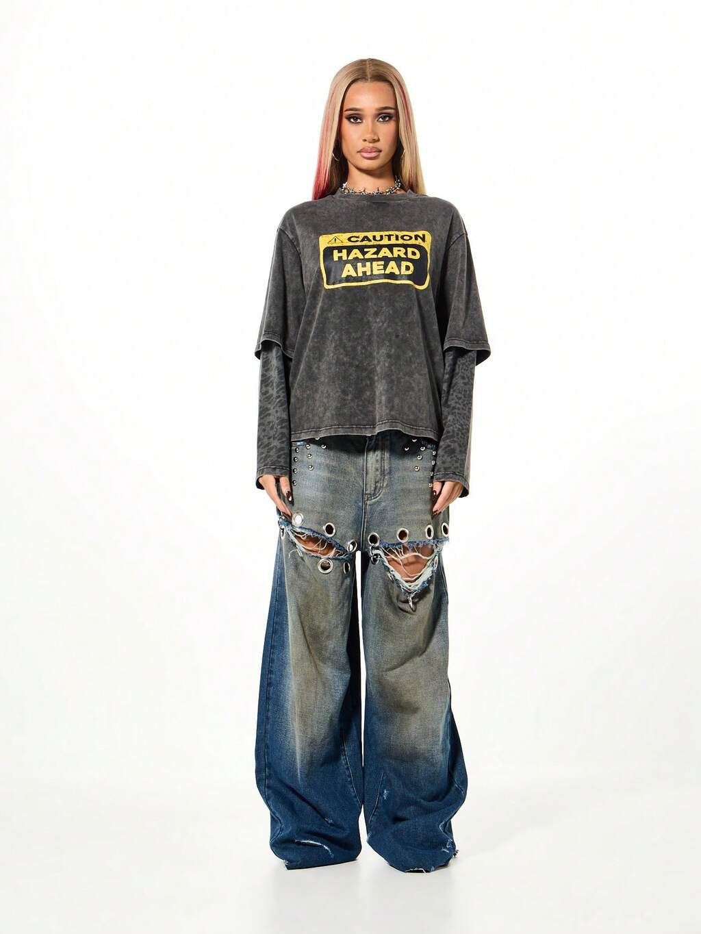 SUMWON WOMEN フェイクレイヤー付きオーバーサイズグラフィックロングスリーブ