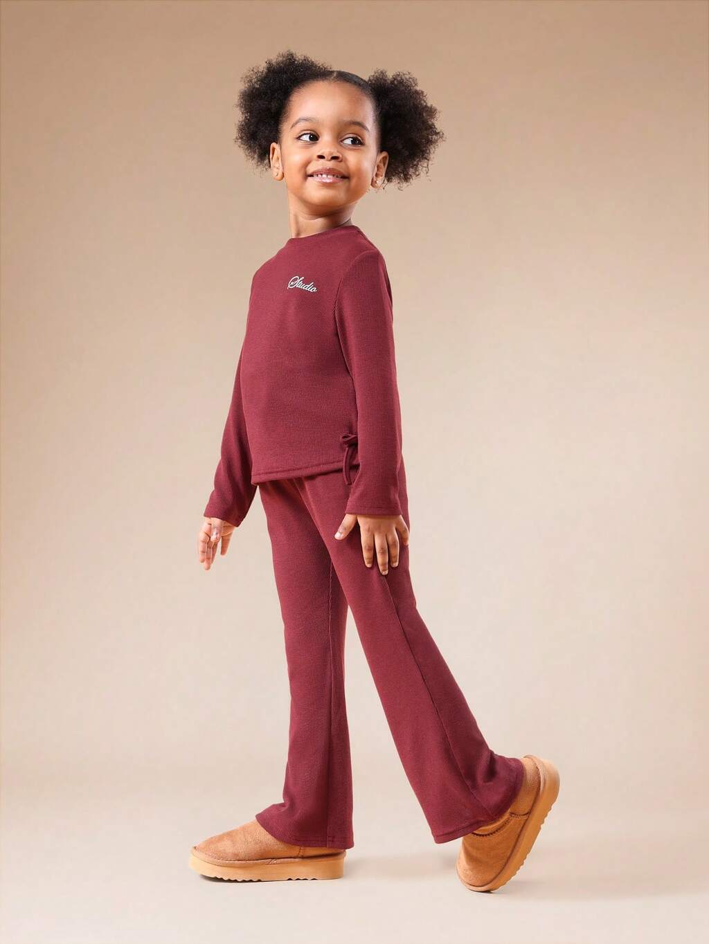 オーバーサイズ ガールズ 2ピース クロップトップ ワイドレッグパンツ コーデ セット サイドスクリプトプリント カジュアルアウトフィット 春夏