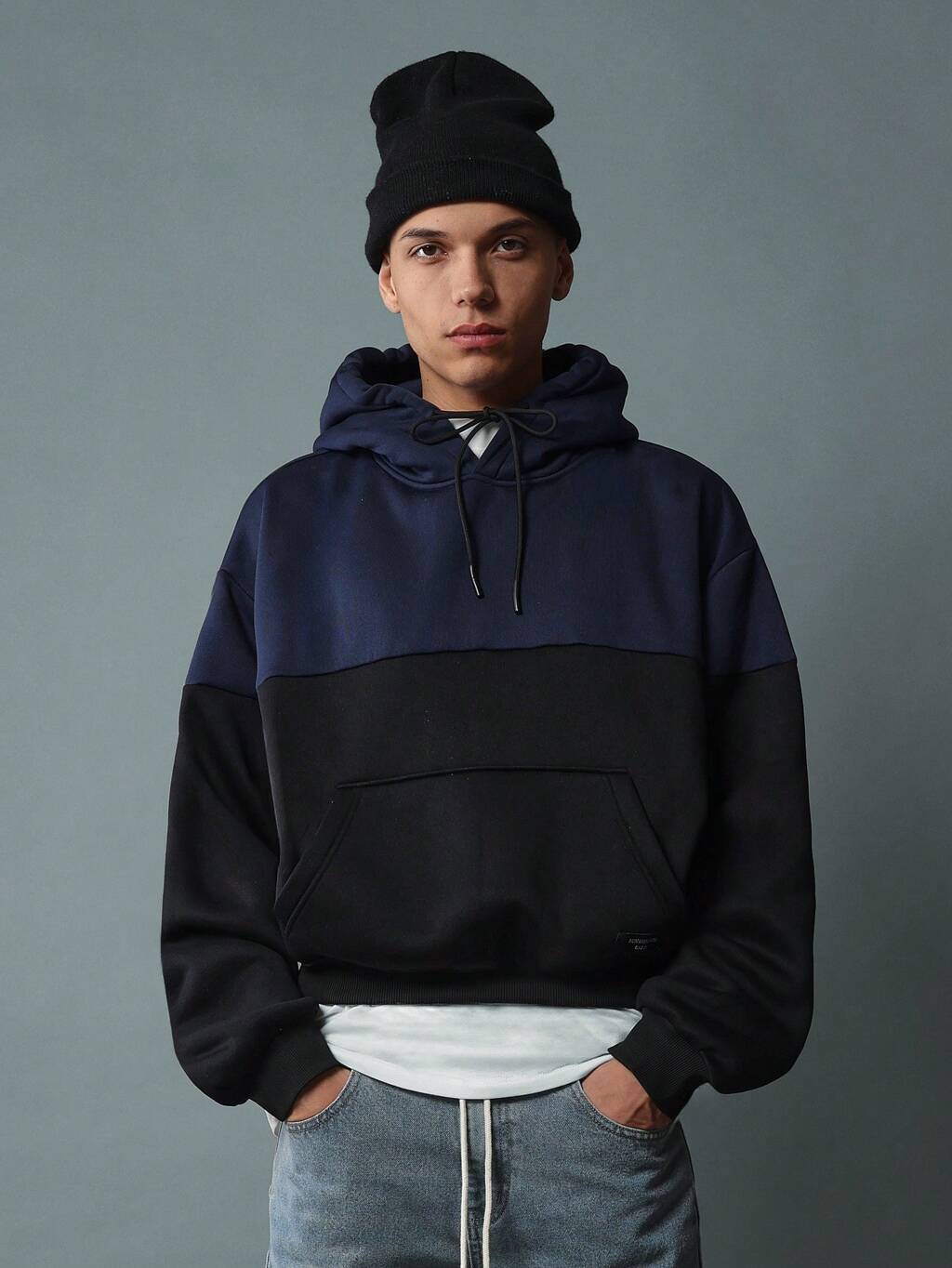 快適なフリースカラーブロックオーバーヘッドパーカー