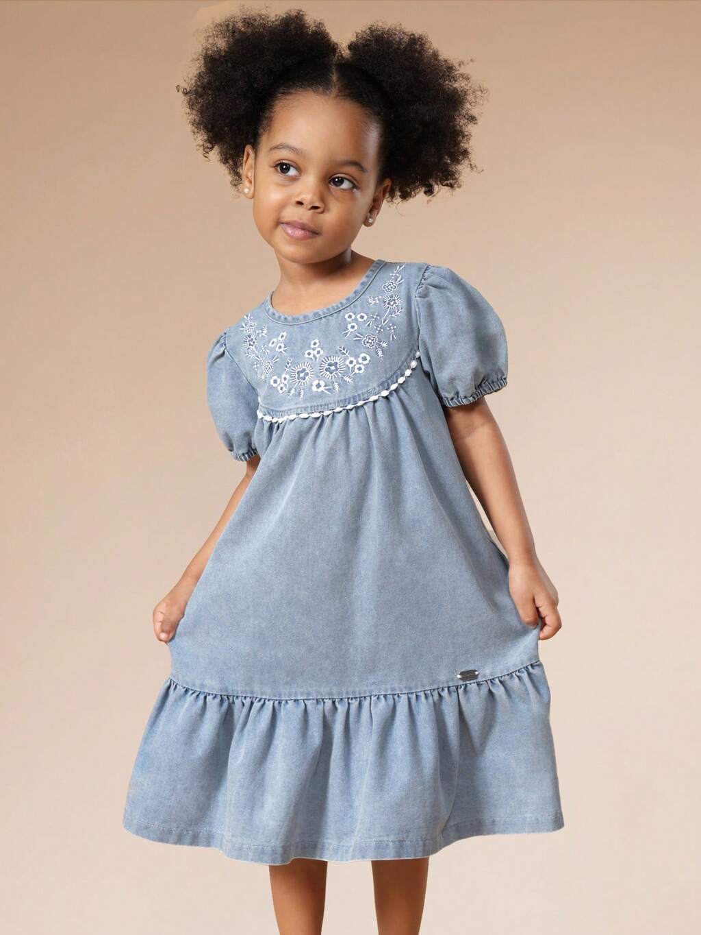 ガールズ ライトブルー Aラインワンピース、ショルダーリボン、バックキーホール開き、ミニ丈、ノースリーブ、カジュアルサマードレス