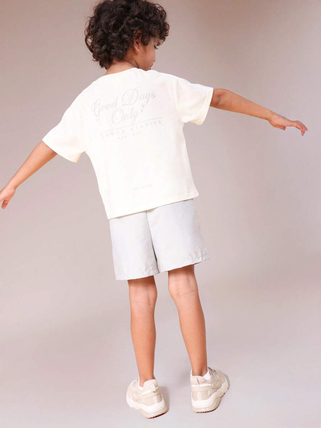 プリントテキスト 半袖Tシャツ & ドローストリングジョガーパンツ カジュアル快適 2ピースセット 男の子 夏