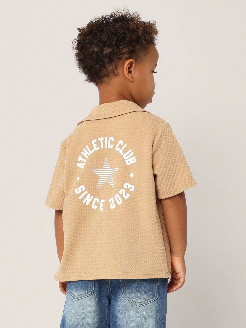 サーフクラブテキストプリントカジュアル夏Tシャツ ボーイズ オーバーサイズ 半袖クルーネック