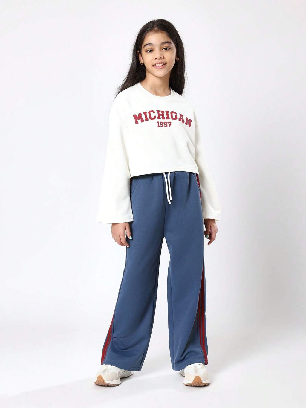 ミシガンロゴ クロップド スウェットシャツとワイドレッグパンツ