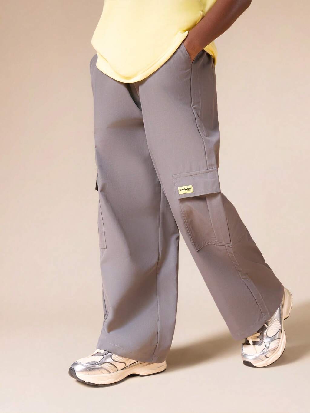 伸縮性のある袖口のワイドレッグカーゴパンツ