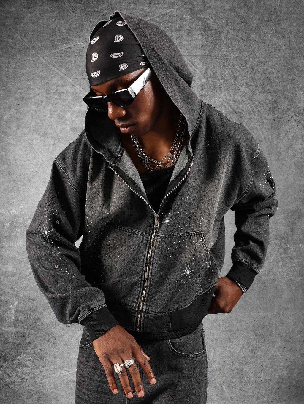 スパークル柄のラインストーンデニムジャケット