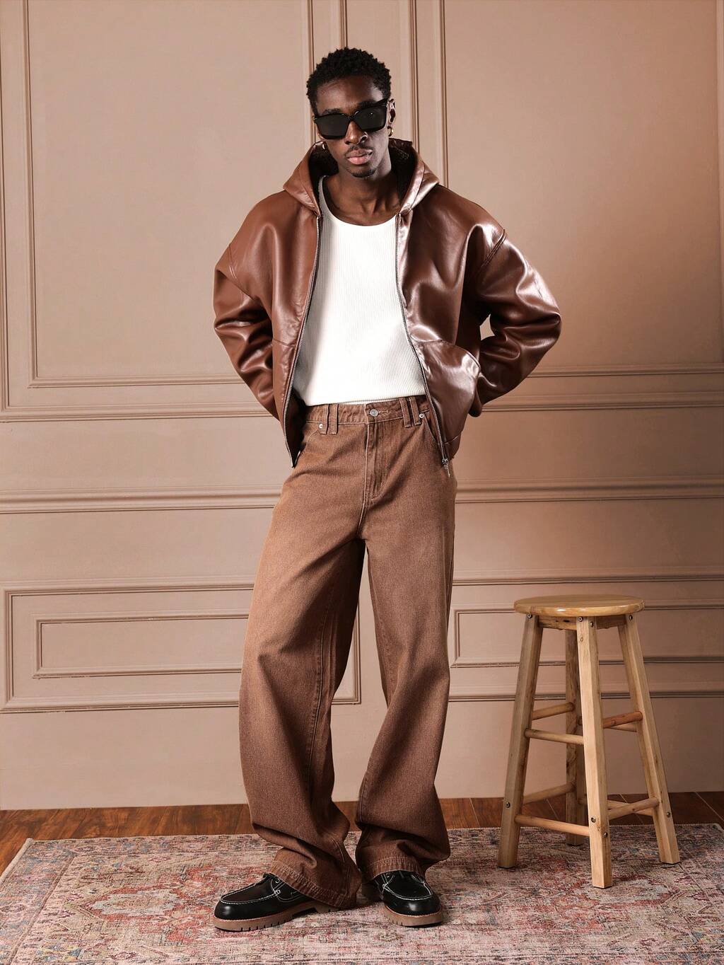 オーバーサイズデニムシャツとワイドレッグパンツ