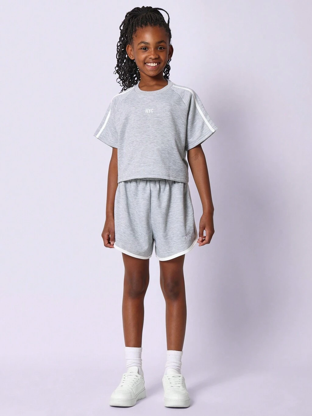 ティーンボーイ カラーブロック Tシャツ ショーツ セット サマーカジュアルアウトフィット ストリートスタイル