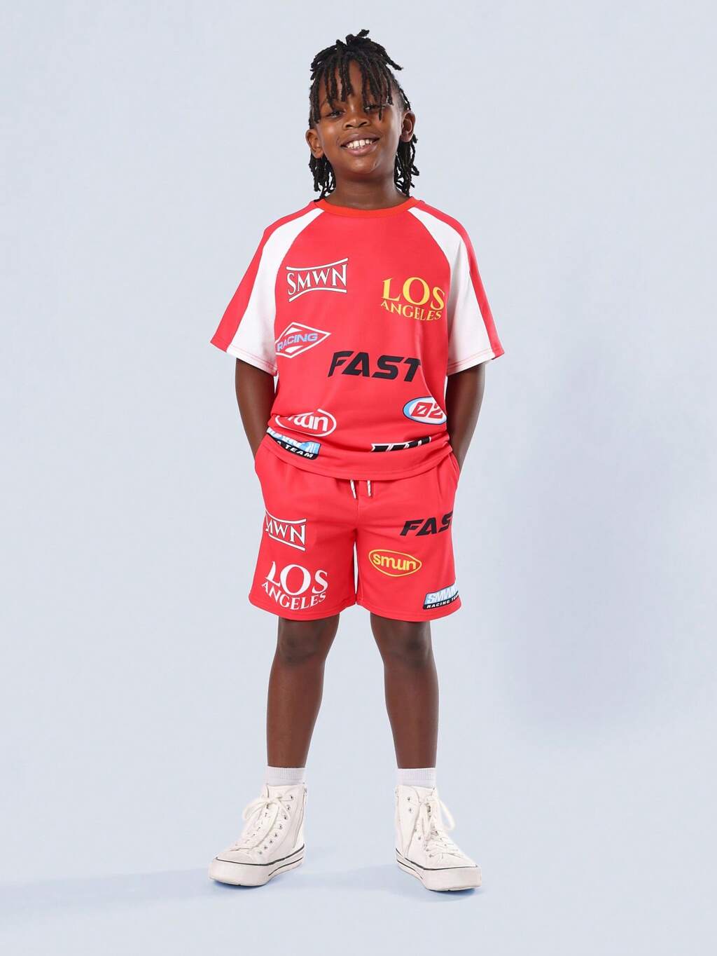 バーシティグラフィック入りフード付きスウェットシャツとショーツ