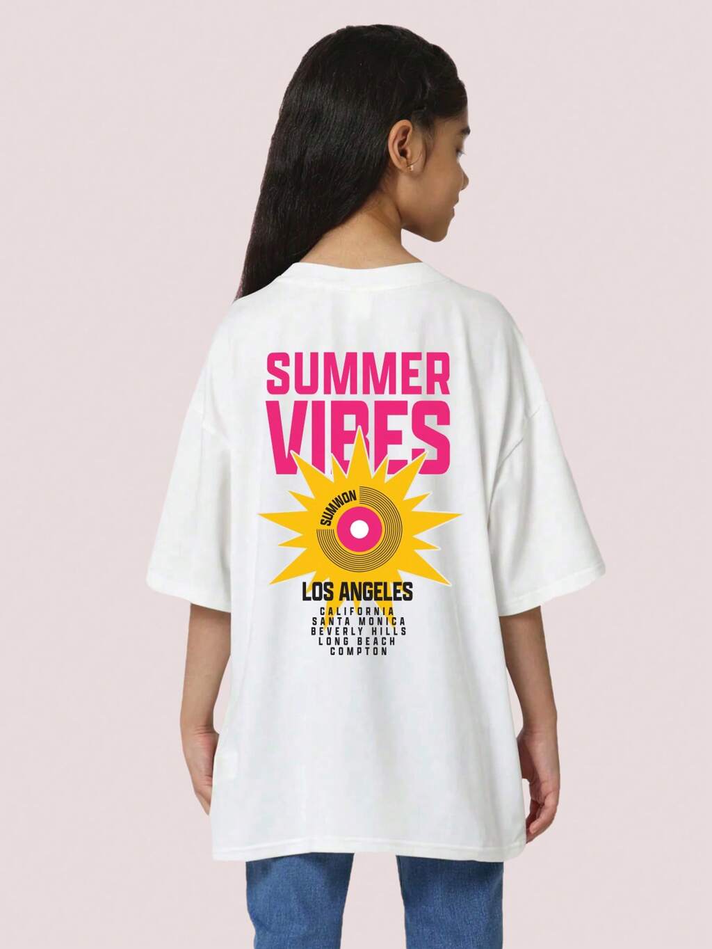 オーバーサイズグラフィック ロサンゼルス カリフォルニア都市プリントTシャツ