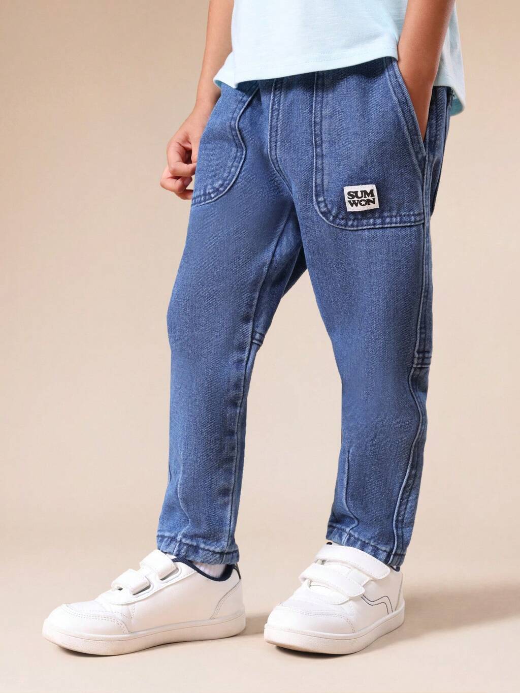 パッチポケット付きリラックスデニムジーンズ