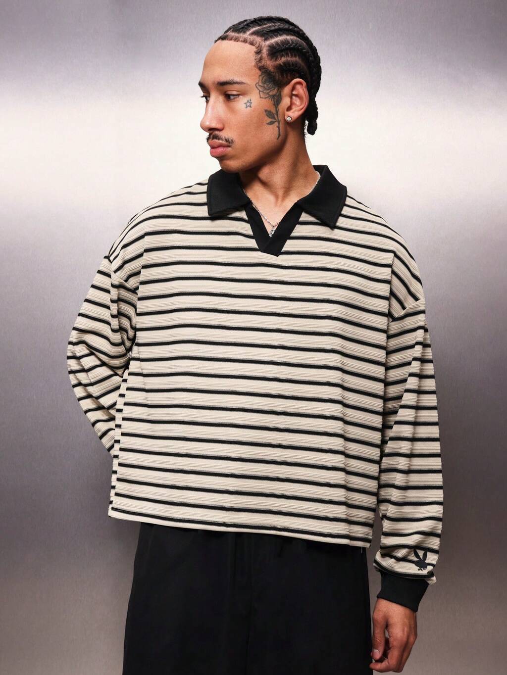 PLAYBOY X SUMWON 襟付き長袖横縞ポロシャツ