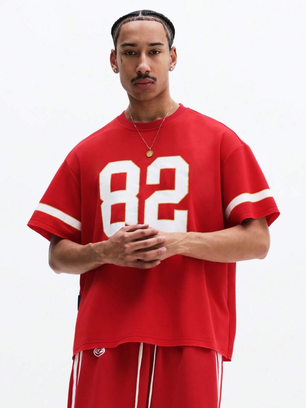 切りっぱなしの裾と小さなロゴが特徴のボックスフィットTシャツ
