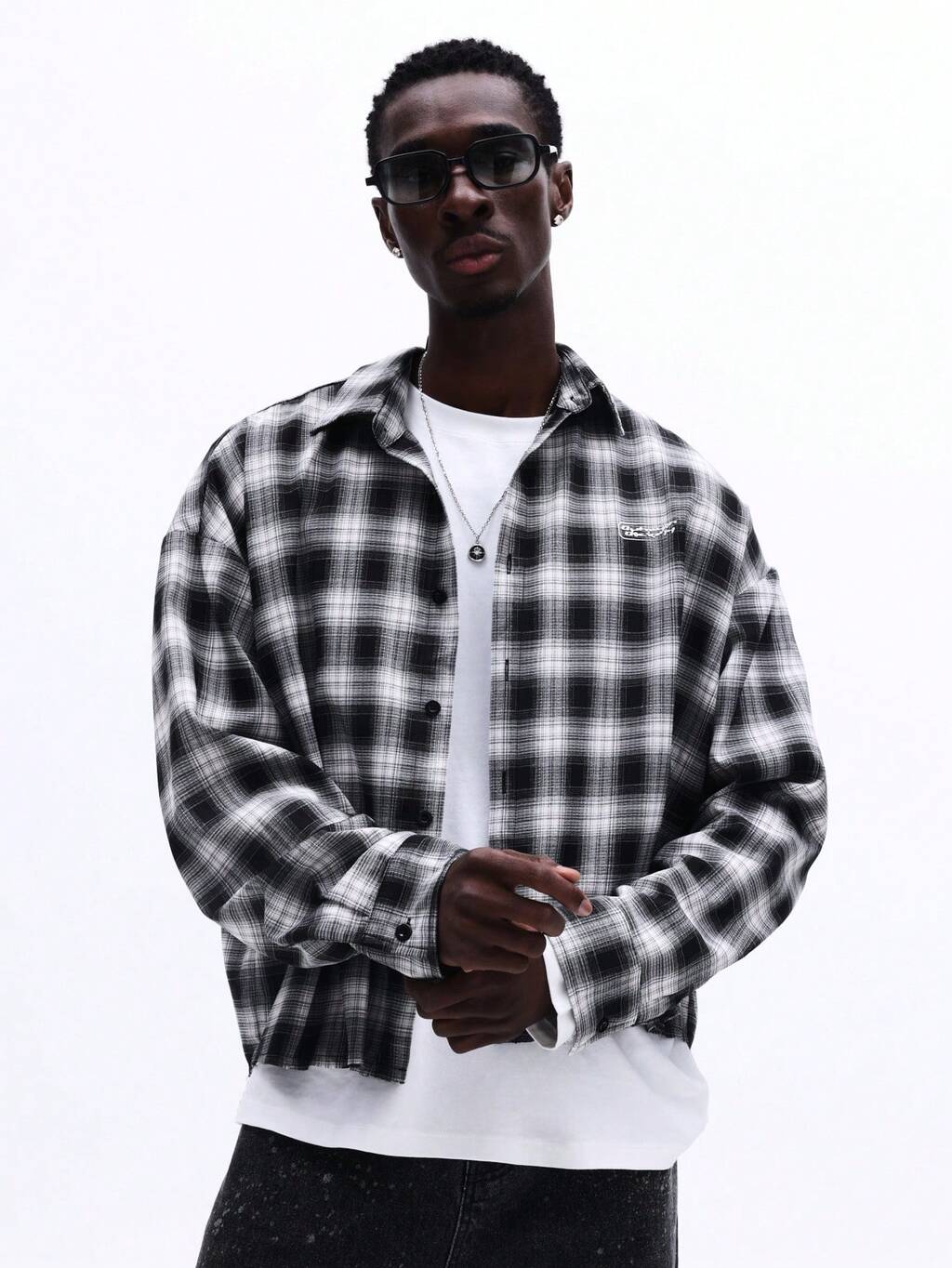 チェック柄のオーバーサイズチェックボタンダウンシャツ