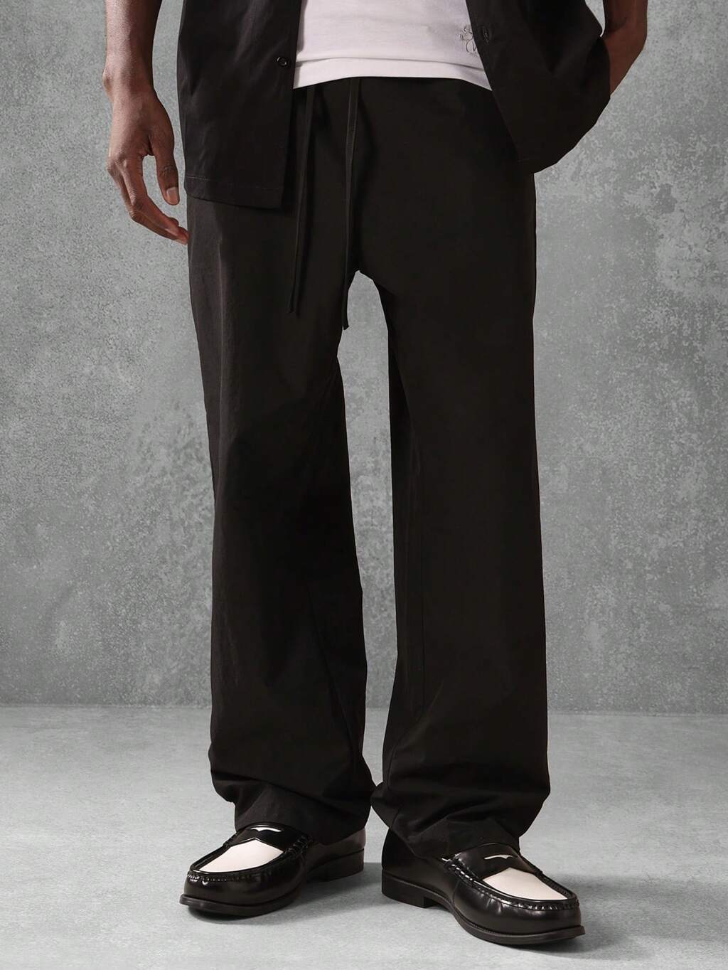 ピンタックとドローストリングが付いたストレートフィットのテクスチャードスウェットパンツ