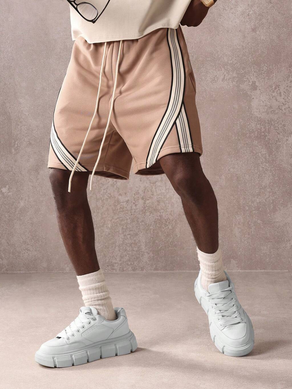 コントラストパネル付きカラーブロックドローストリングショーツ