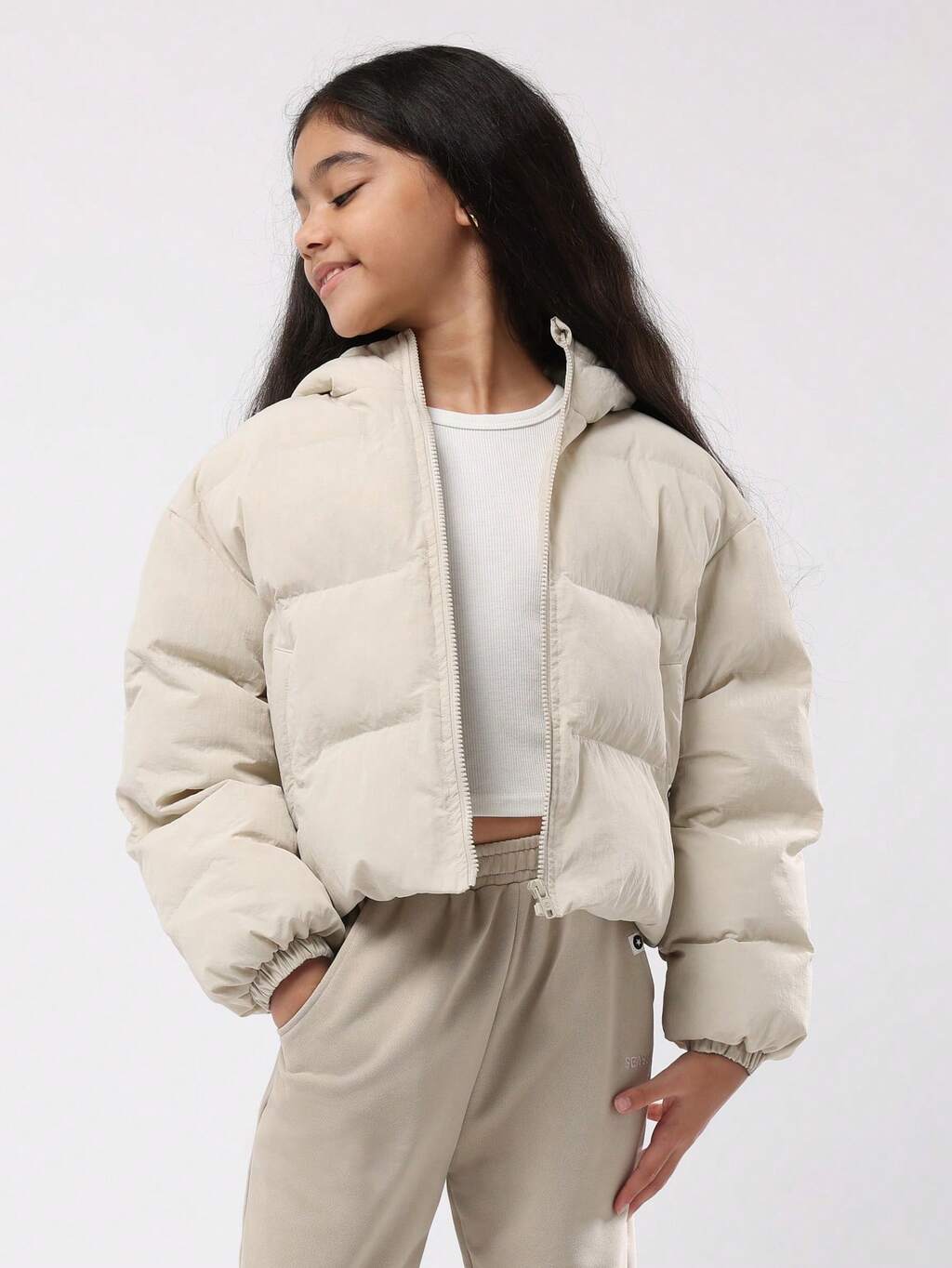 キルティングフード付きパファーコート(ジップ付き)