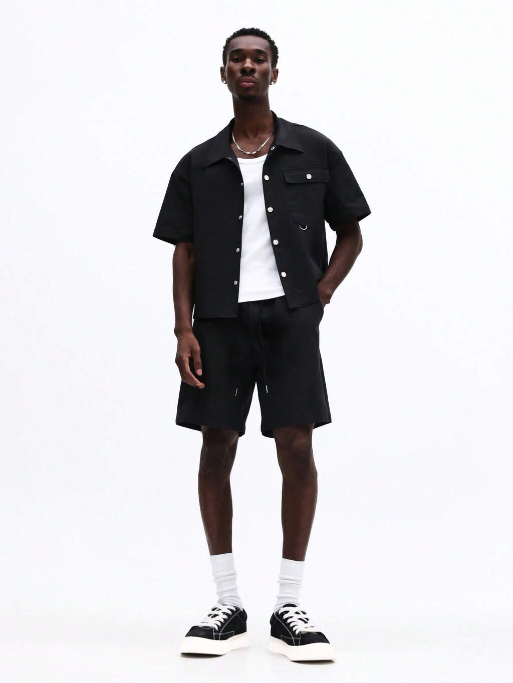 黒シャツとショートパンツのコーデセット