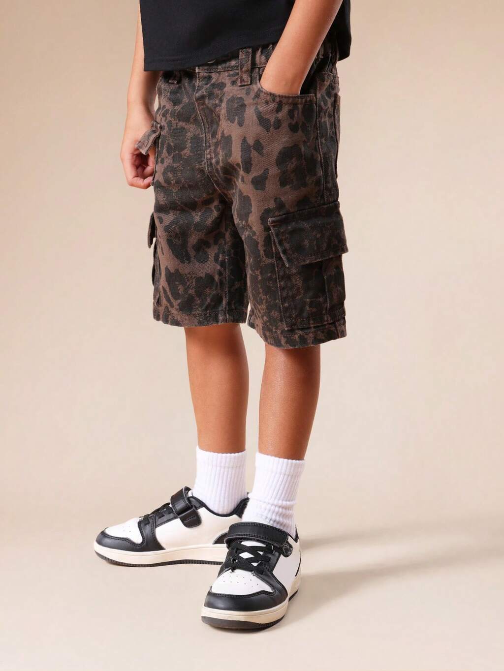 複数のポケット付きカモフラージュカーゴショーツ