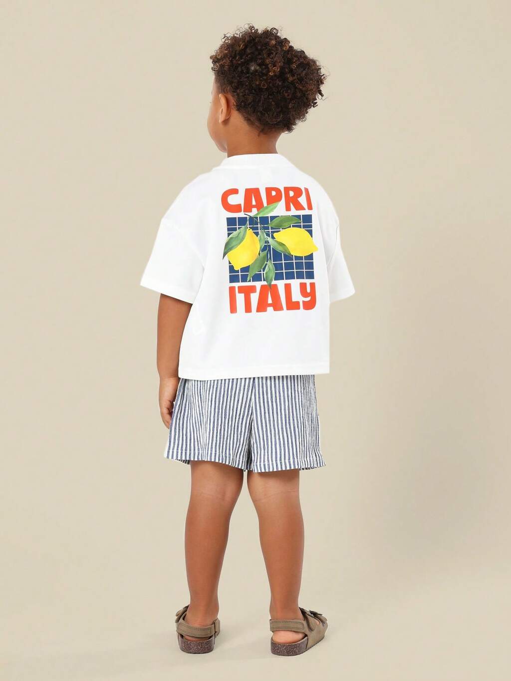 イタリアのバケーションをテーマにしたTシャツとストライプのショーツのセット