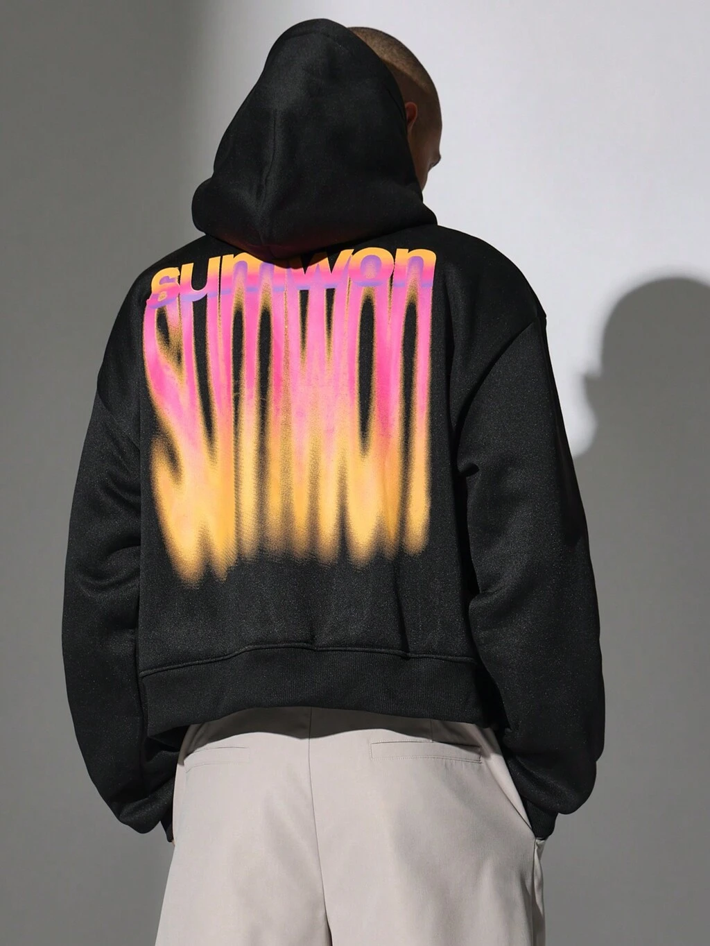 PLAYBOY X SUMWON 워시 효과 박시 후드 티셔츠, 로우 엣지 디테일
