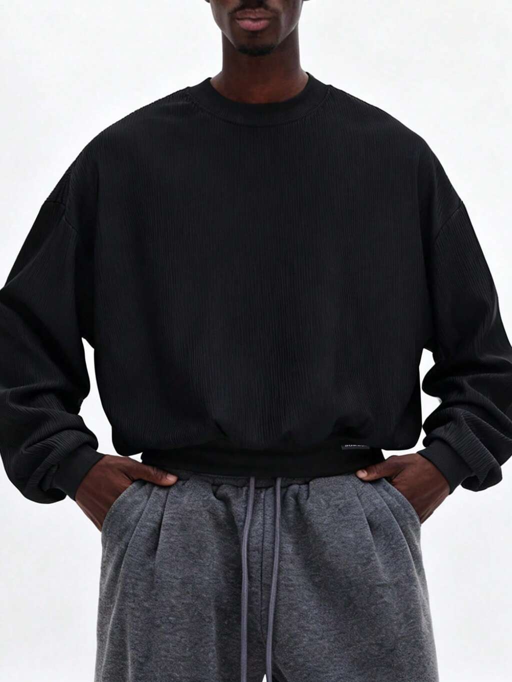 리브드 크루넥 긴팔 스웨트셔츠