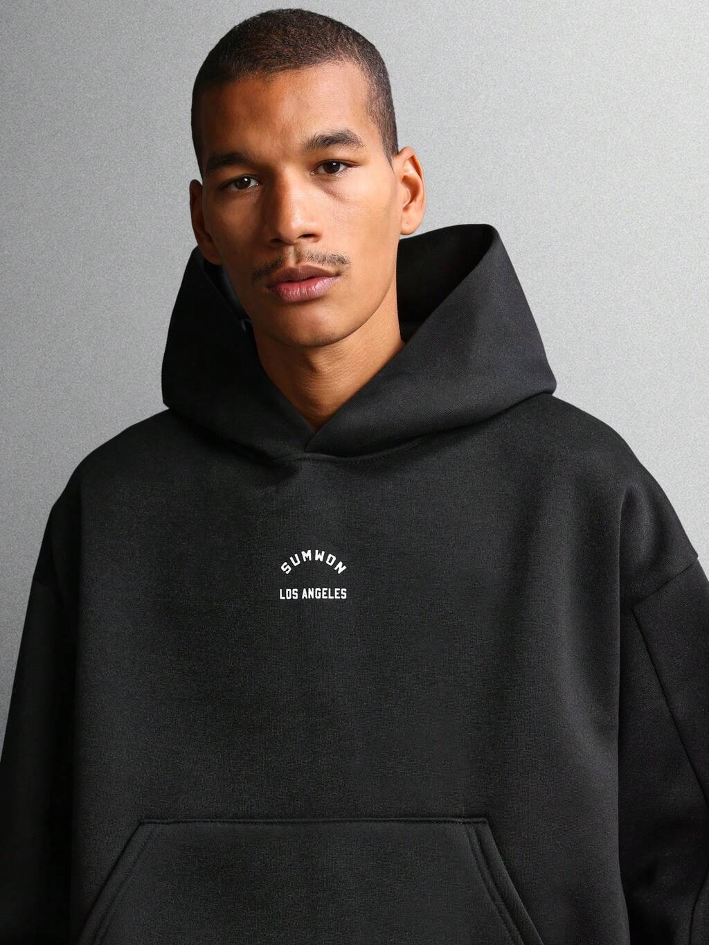 뒷면에 텍스트가 있는 박시핏 후드티