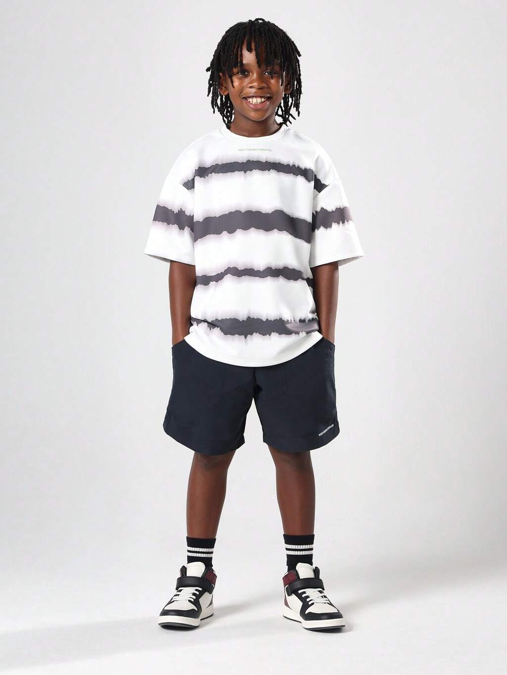 보이 반팔 크루넥 티셔츠와 드로스트링 반바지 로고 프린트 투피스 여름 세트