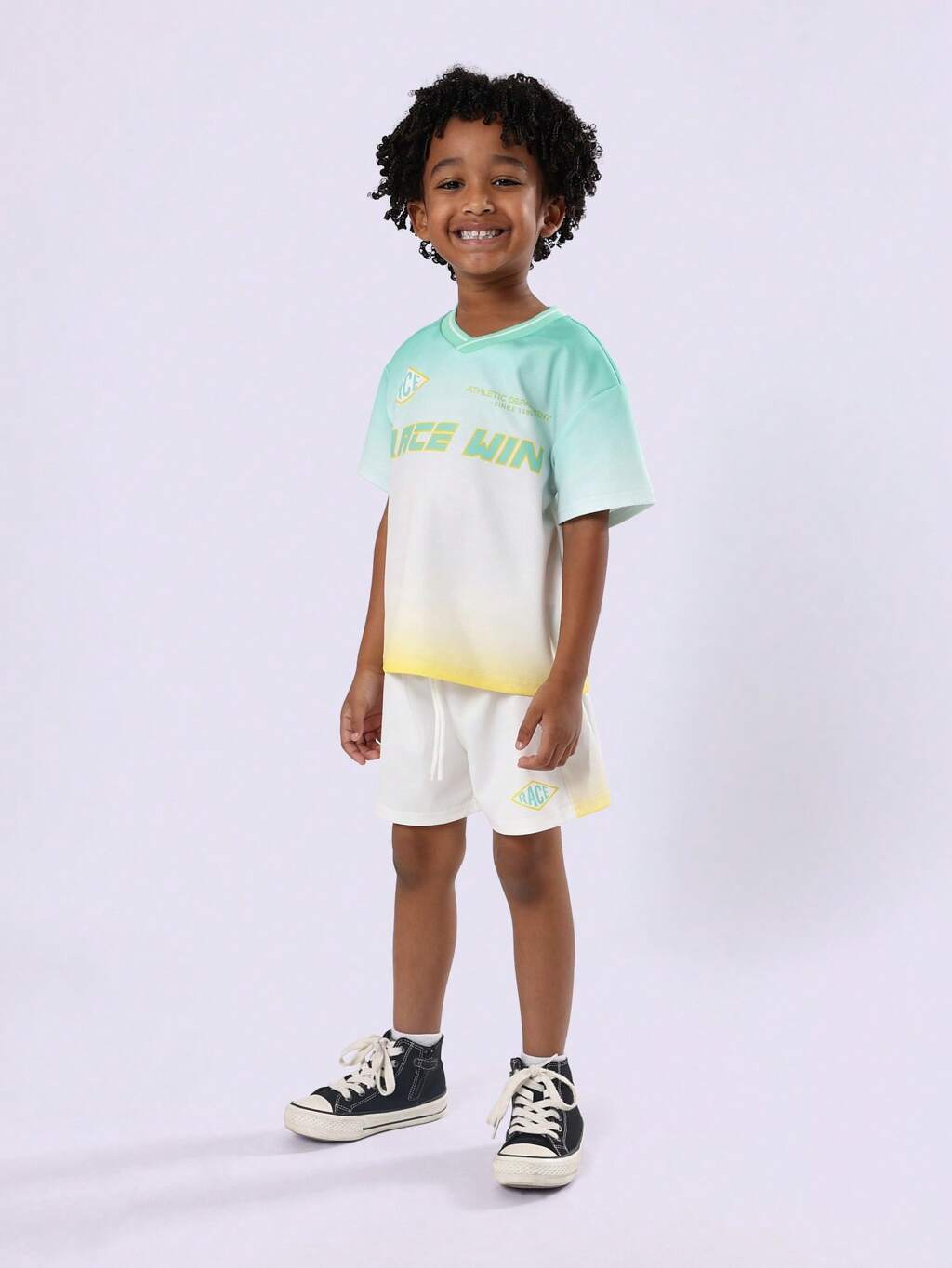 보이 굿 에너지 저지 코디 세트, 여유로운 핏 반팔 티셔츠와 매칭 쇼츠 여름 캐주얼웨어
