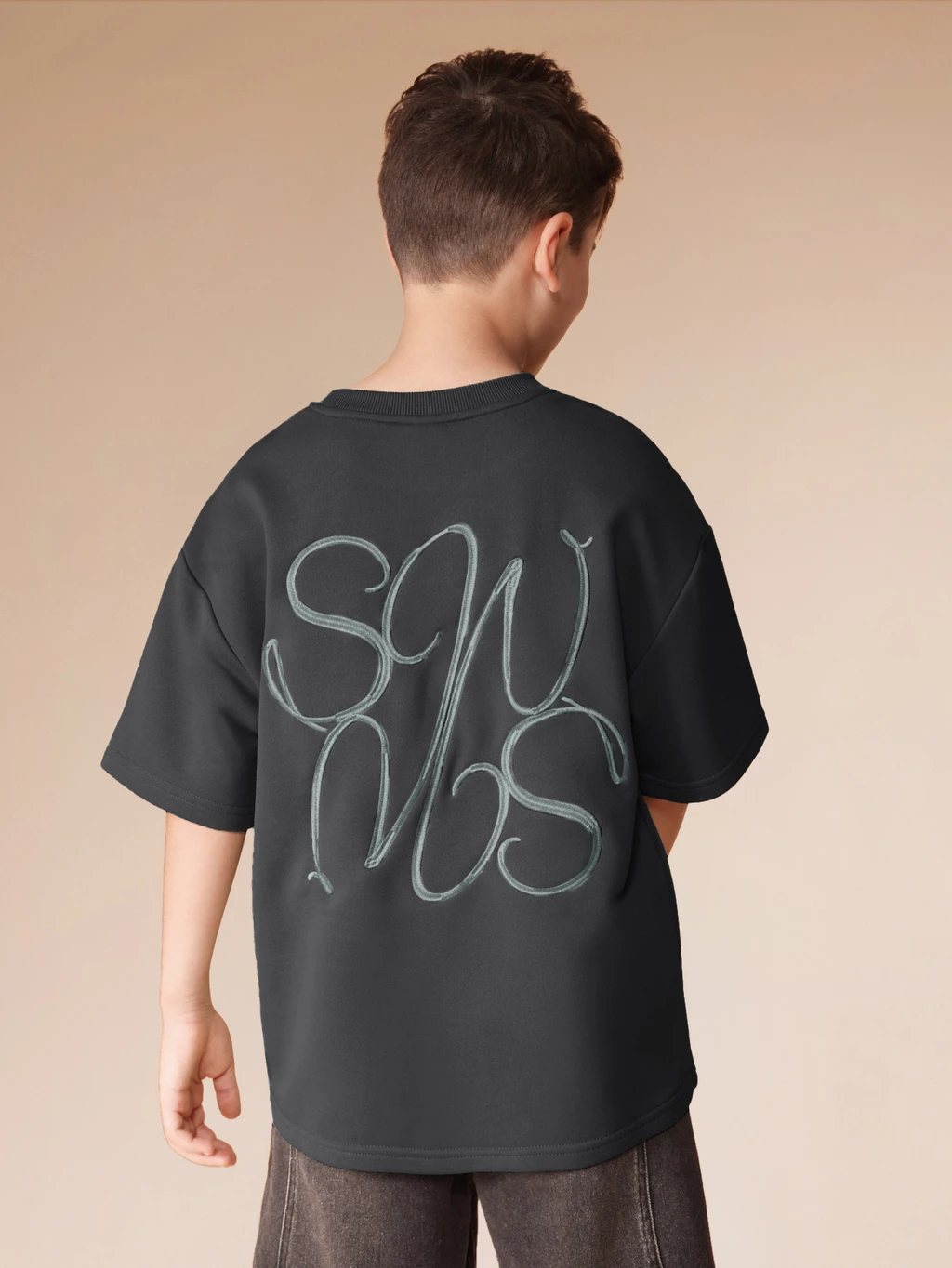 트윈 보이즈 오버사이즈 바시티 프린트 티셔츠