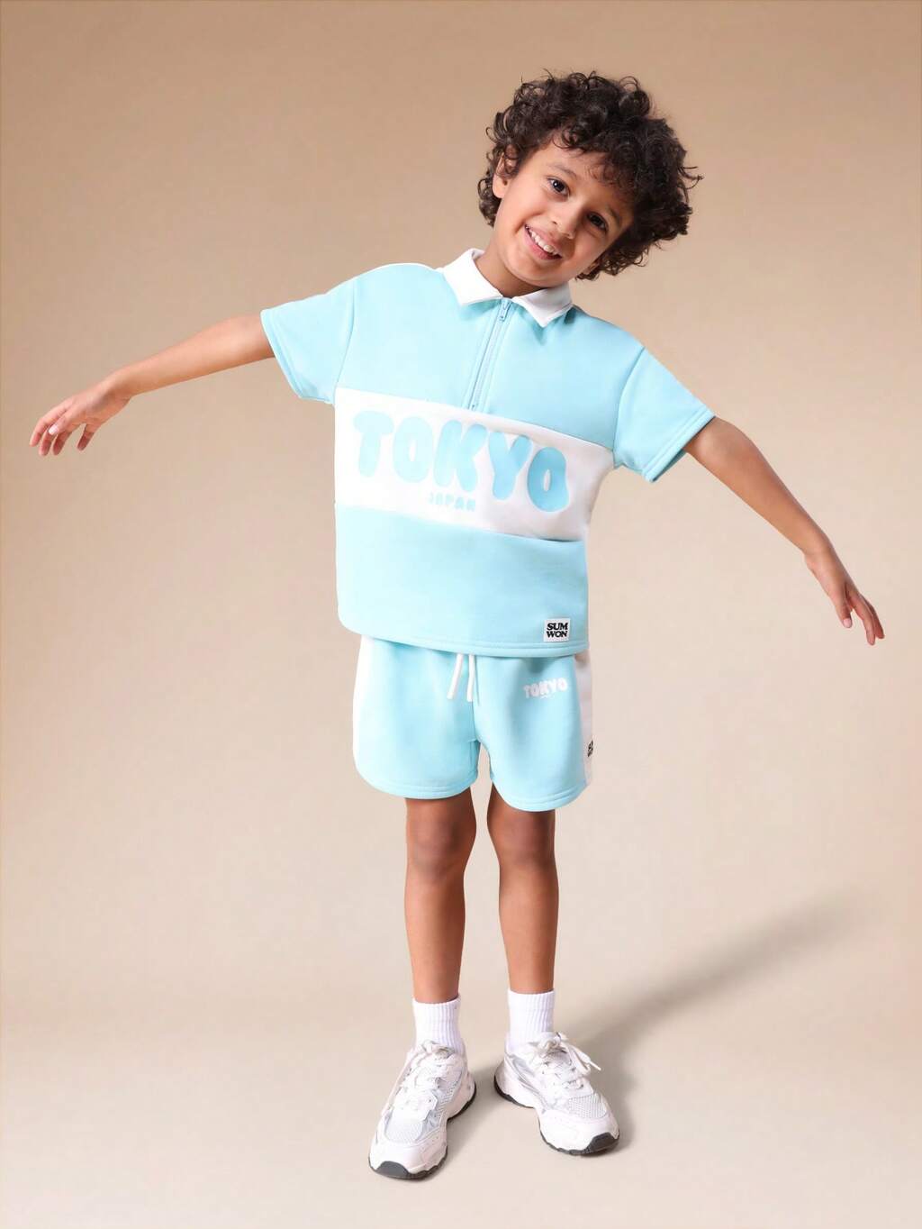 지퍼형 폴로셔츠와 반바지 세트