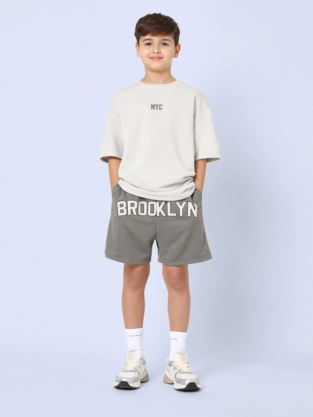 브루클린 프린트가 있는 오버사이즈 티셔츠와 반바지 세트