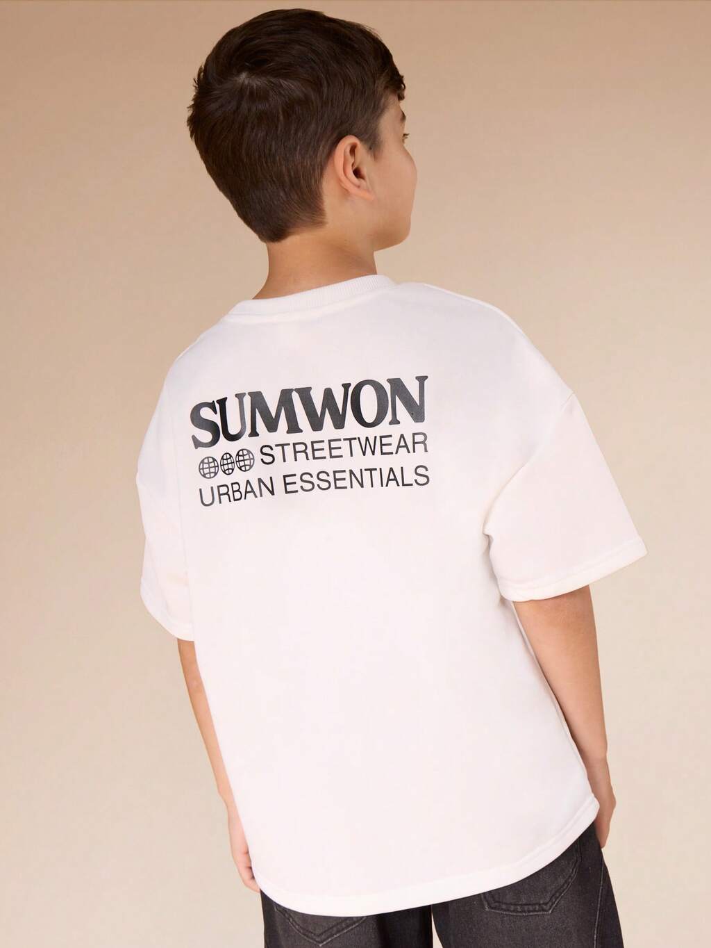 텍스트 프린트가 있는 오버사이즈 티셔츠와 반바지 세트