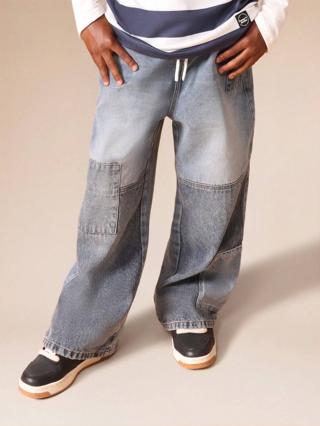 신축성 허리밴드가 있는 스트레이트 컷 풀온 데님 진